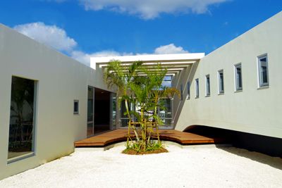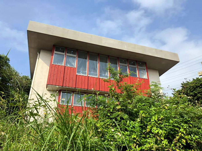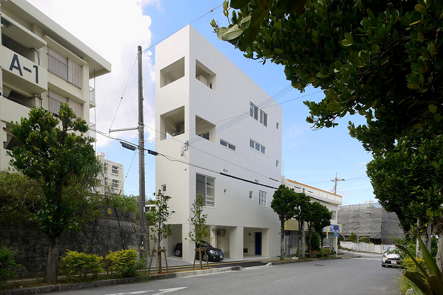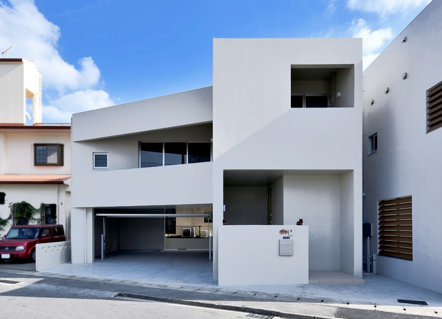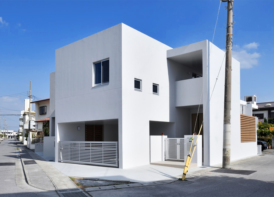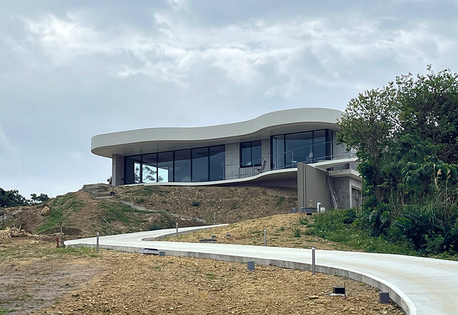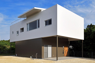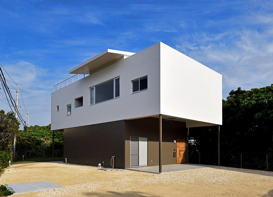 恩納村の海が見える家。箱を重ねたような素敵な家です。