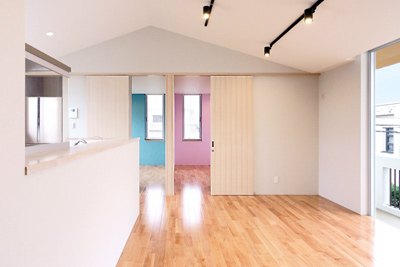 元々あった親世帯の住む2階建ての住宅を改修した、2階部分に息子夫婦と孫が住む建築です。