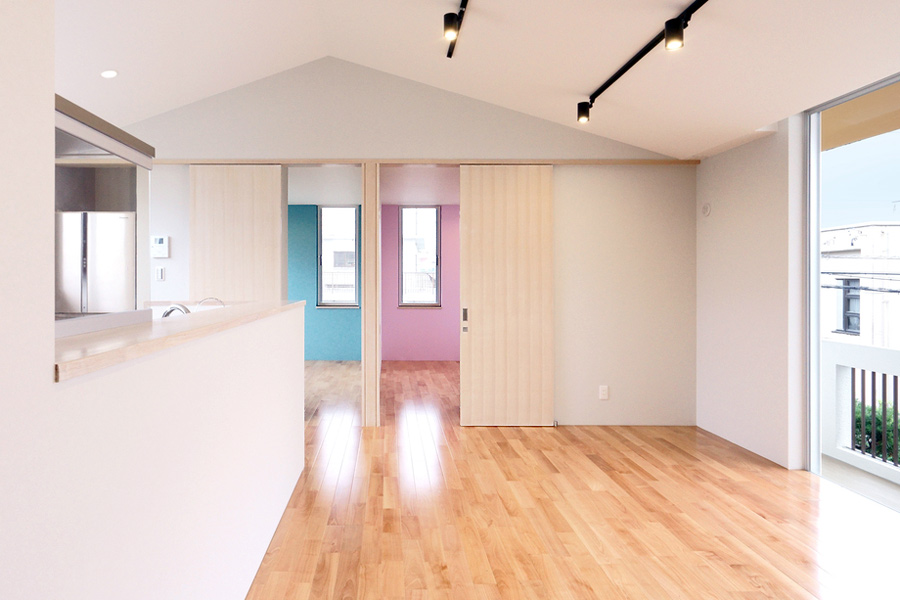 S邸と同じ敷地に建つ姉妹のための家。スキップフロアになっております。